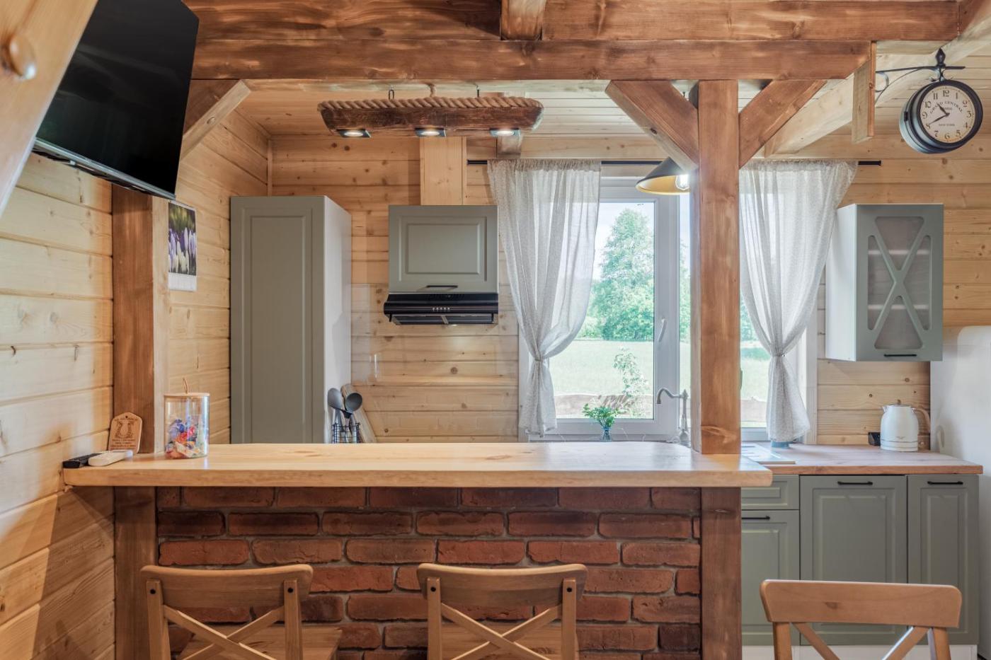 Domek z 3 sypialniami. This chalet features a fireplace. Guests will find a stovetop, a refrigerator, a dishwasher and kitchenware in the fully equipped kitchen. The chalet also comes with a barbecue. The spacious chalet features air conditioning, an electric kettle, a terrace with garden views as well as a shared bathroom boasting a shower. The unit has 5 beds. Domek - 6 osobowy. Powierzchnia pokoju ok.: 80 mkw.