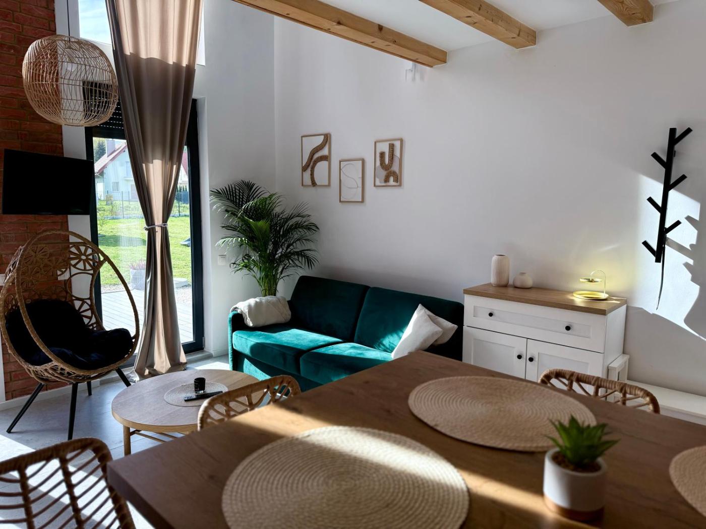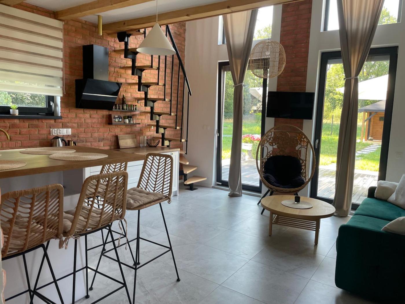 W domku do dyspozycji gości przygotowano taras, sypialnię (1), salon oraz aneks kuchenny z doskonałym wyposażeniem. Goście mają do dyspozycji telewizor z płaskim ekranem.