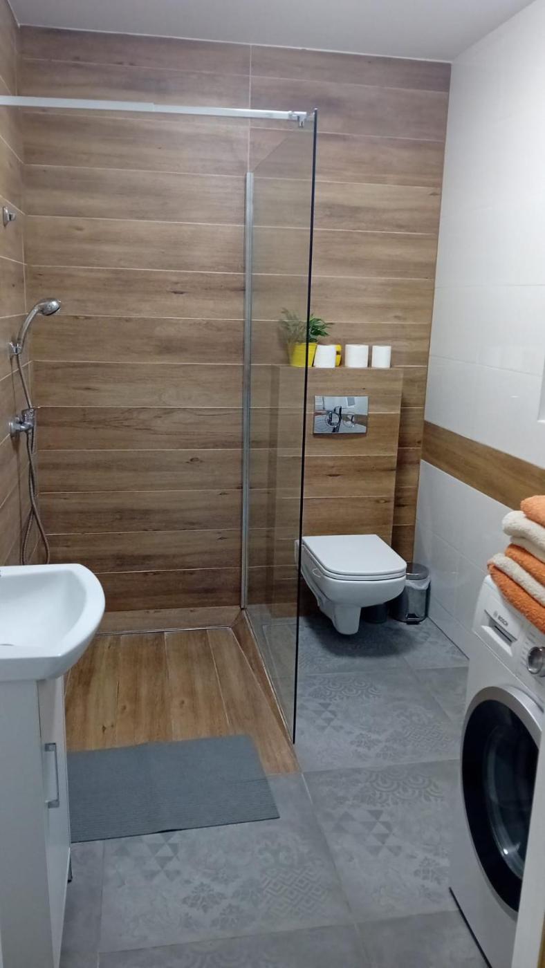 Dom z 2 sypialniami. Guests will find a refrigerator, kitchenware, a microwave and a tea and coffee maker in the well-equipped kitchenette. The holiday home also offers a barbecue. The holiday home provides a washing machine, a private entrance, a terrace with garden views as well as a shared bathroom featuring a shower. The unit offers 8 beds. Dom wakacyjny - 9 osobowy. Powierzchnia pokoju ok.: 65 mkw. ;