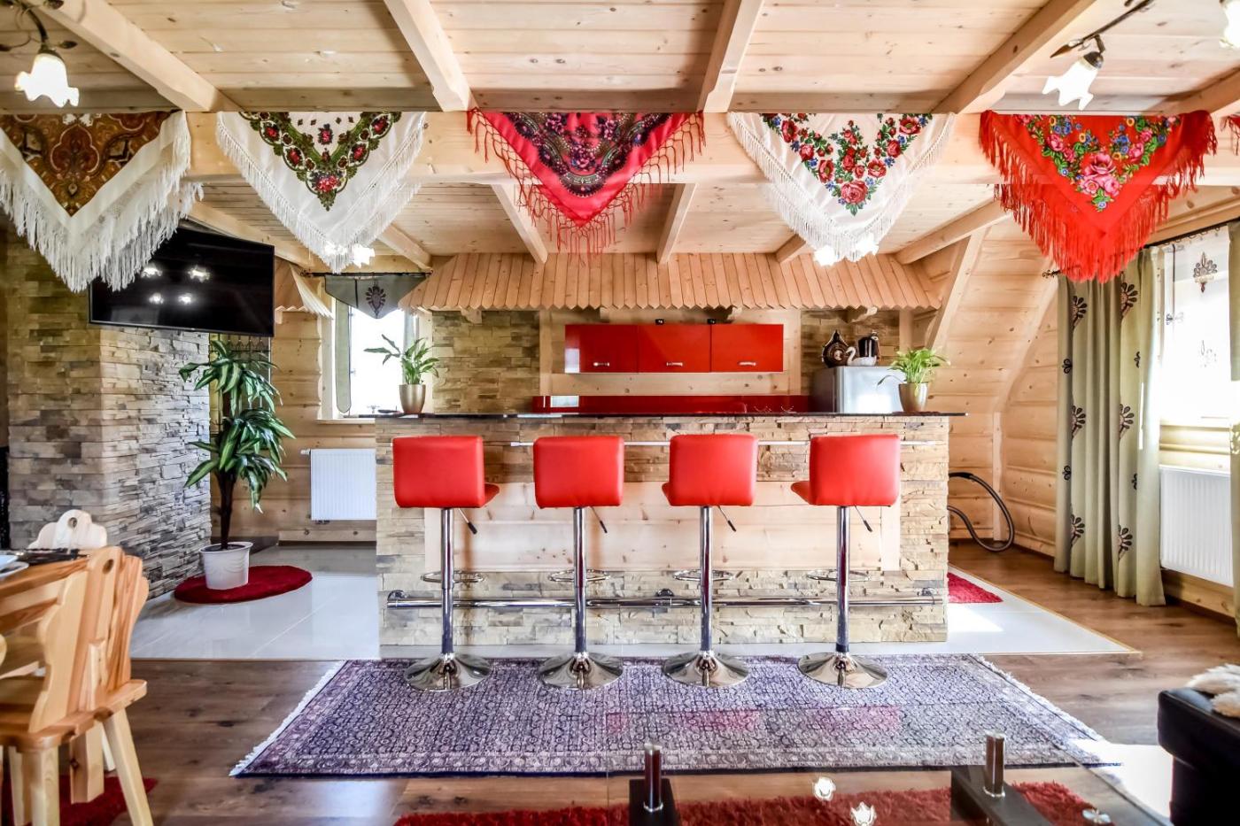 Domek z 2 sypialniami. Guests will have a special experience as this chalet offers a fireplace. Boasting a private entrance, this spacious chalet also includes 1 living room, 2 separate bedrooms and 2 bathrooms with a shower. Guests will find a stovetop, a refrigerator, a dishwasher and kitchenware in the well-equipped kitchenette. The chalet also features a barbecue. The chalet has parquet floors, a seating area with a flat-screen TV, a washing machine, soundproof walls as well as mountain views. The unit has 5 beds. Domek - 5 osobowy. Powierzchnia pokoju ok.: 95 mkw.